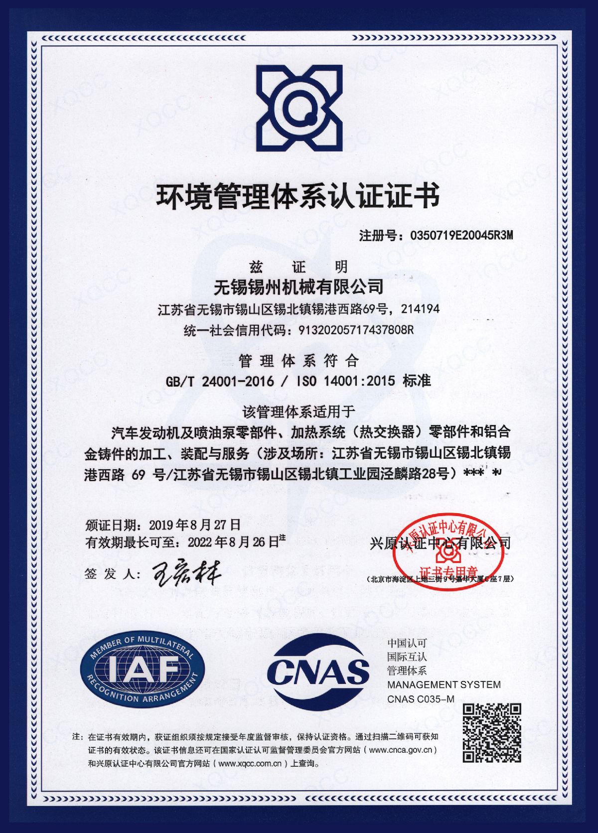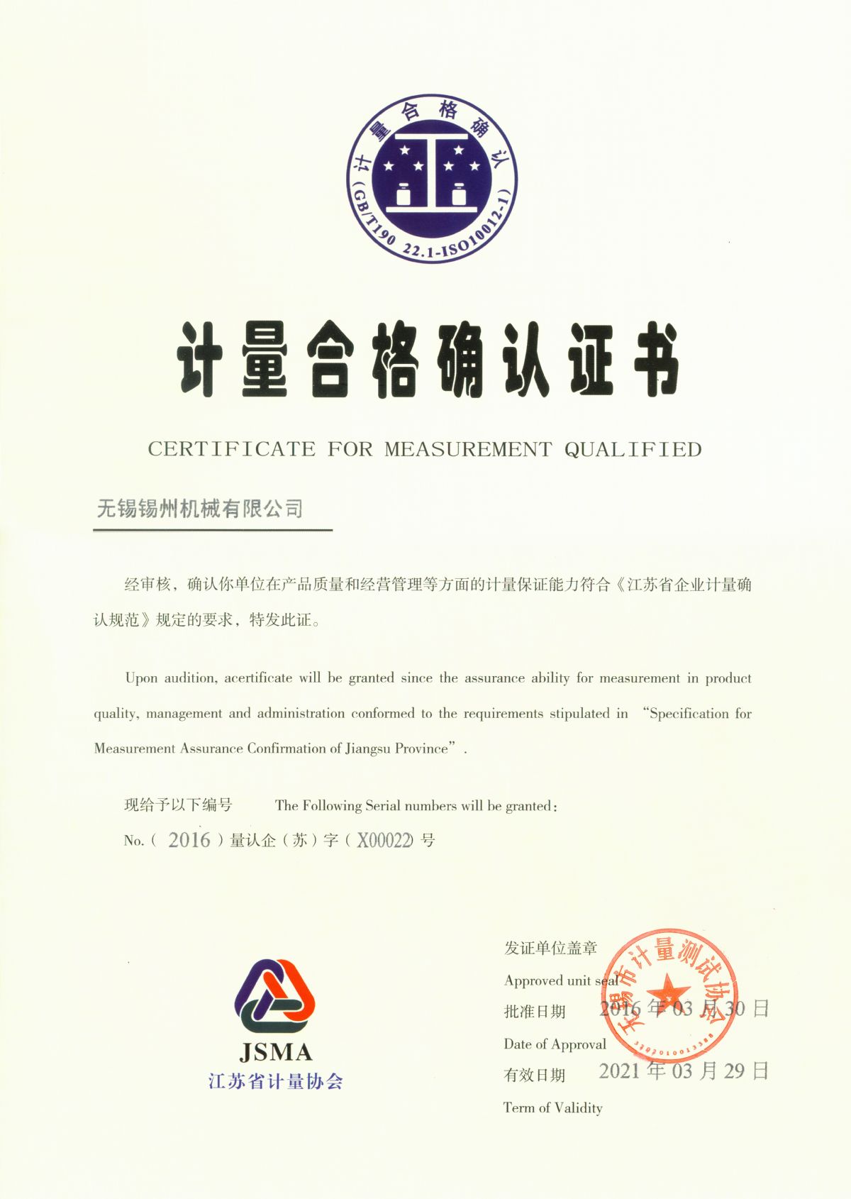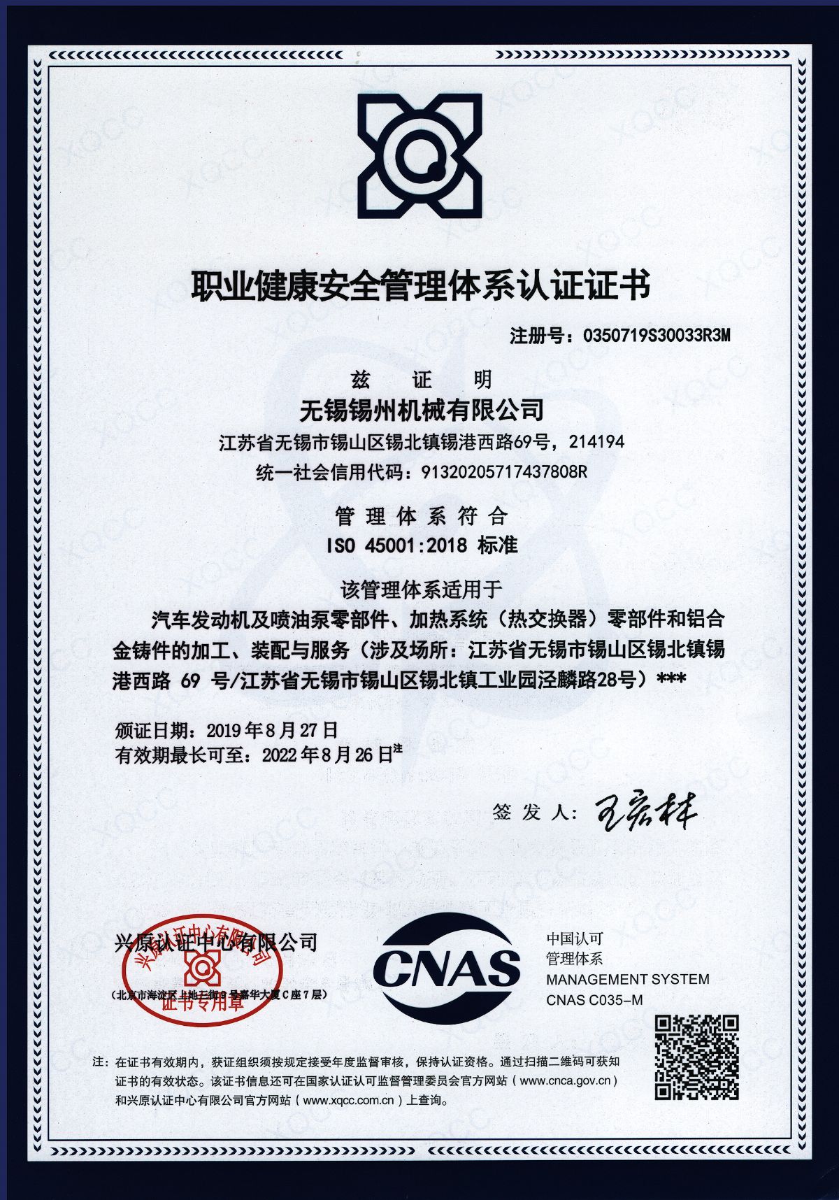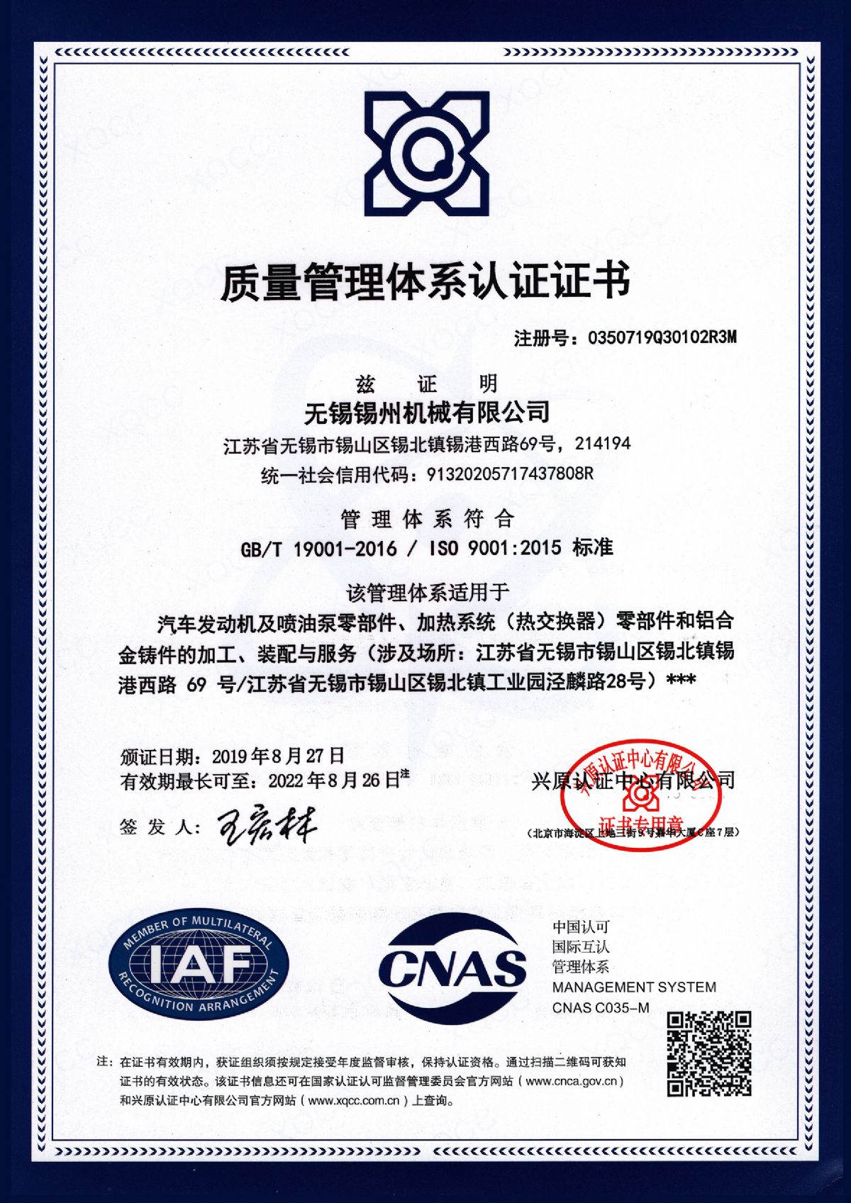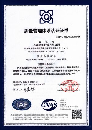 “ 以質量求生存,以管理增效益”是錫州機械堅定不渝的經營理念;“質量第一、客戶至上”是錫州機械堅持不懈的追求;“ 以人為本,鑄就優(yōu)質產品, 精益求精,增強顧客滿意”是錫州機械持之以恒的質量方針。 2001年7月公司通過ISO9001:2000質量體系認證, 2005年9月通過ISO/TS16949質量體系認證。公司于2007年7月通過產品ASME認證。 通過開展以產品質量為中心的企業(yè)管理,公司以先進的生產檢測設備、完善的質量保證體系、嚴密的產品開發(fā)體系、嚴格按照標準開展產品生產管理,并開展6S現場管理,竭盡全力創(chuàng)造一個比較清潔、健康、安全的環(huán)境,全方位地滿足國內外客戶的要求。